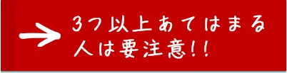 チェックはいくつ入りましたか?1つでも注意が必要ですが、3つ以上なら要注意です!